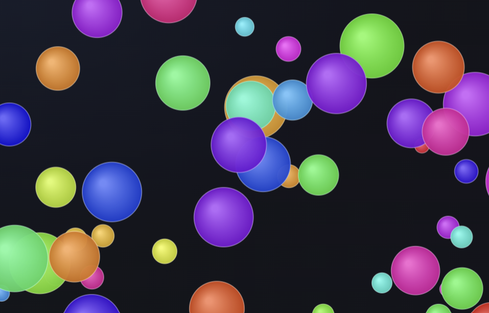 This is an interactive physics-based simulation where colorful balls bounce and collide in a dynamic environment. Players can spawn multiple balls with customizable properties including size and bounciness. The game features realistic gravity physics that can be toggled on or off. Users control the simulation through an intuitive interface with options to add 10 balls at once or clear the screen entirely. The balls interact with each other through collision detection, creating mesmerizing visual patterns as they move and bounce around the play area. A scoring system tracks player engagement throughout the session. The minimalist dark interface puts focus on the vibrant, gradient-styled balls that create oddly satisfying movements and interactions.